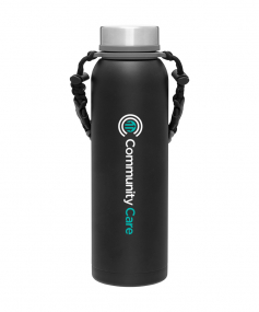 32 oz double wall 18/8 stainless steel thermal bottle with copper vacuum insulation, insulated stainless steel threaded lid, silicone ring, removable strap with buckles, removable clasps, and powder coated finish. Individual gift box. Hand wash recommended. Do not microwave. Complies with FDA, Prop 65. 11" H x 3.1875" W